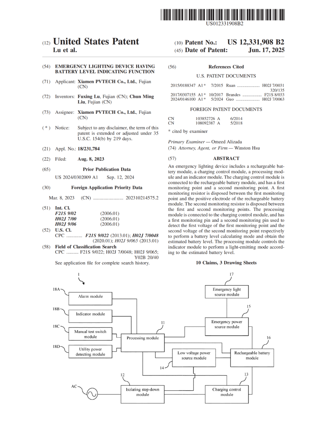 近日,普为光电荣获三项美国专利。 美国发明专利“具高耐压能力的照明装置保护电路”。 专利号:US 12,336,073 B2专利号:US 12,336,073 B2.png 美国发明专利“电量指示功能的应急照明装置”。专利号:US 12,331,908 B2 专利号:US 12,331,908 B2.png美国外观设计专利“面板灯电源盒”。专利号:US D1,080,019 S专利号:US D1,080,019 S.png